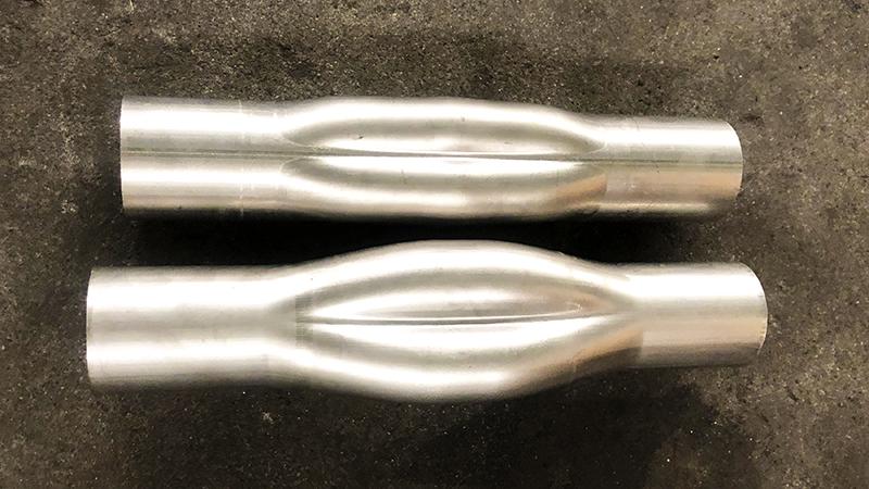 - 水涨内高压成型工艺:以高压水体为“柔性模具”,使管坯在模具约束下一体成型。水体压力均匀传递至管坯每个角落,无论是复古车的大曲率尾管,还是运动车的变径中段,都能实现±0.1mm级精度,表面无任何拼接焊缝,弧度流畅自然。哑光或亮面处理后,整体质感统一,还能减少气流阻力,让排气声浪更纯净浑厚。